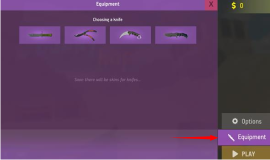 2、建议在正式开始前,先点击上方的“Equipment”选项,购买一件武器以备防身之需。
