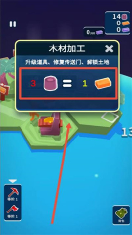 2、在关卡挑战中,通过砍伐木材获取初始资源。