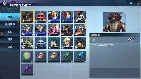 4、仓库:在仓库中,玩家可以看到自己所持有的所有机体碎片、机师碎片以及各类道具。通过仓库,玩家可以方便地管理自己的物品。