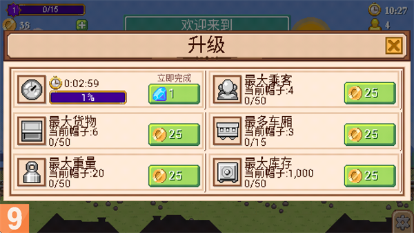 5、利用赚取的金币升级列车的各项属性(如速度、容量等),从而提升运行效率并增加单次行程的收益。