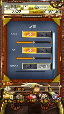 6、设定选项中可对声音、SE(音效)、VOLEC(可能为语音相关设置)进行调整。