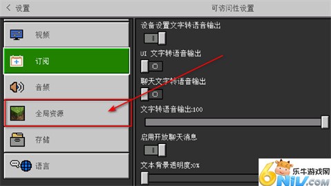 2、向下滑动,找到全局资源并点击进入。