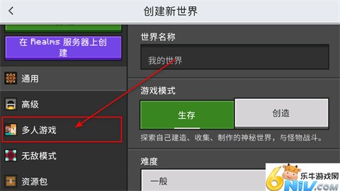 6、选择创建新世界选项。