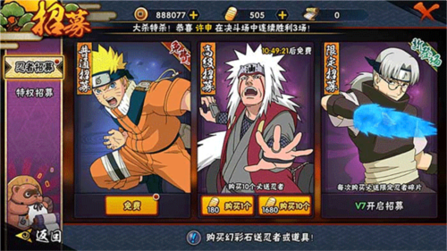 特权商店:玩家可以在特权商店购买相应的忍者碎片,但特权商店需要VIP等级10才能开启。通过充值,玩家可以获得一些特权和金币,从而快速获取所需的忍者碎片。