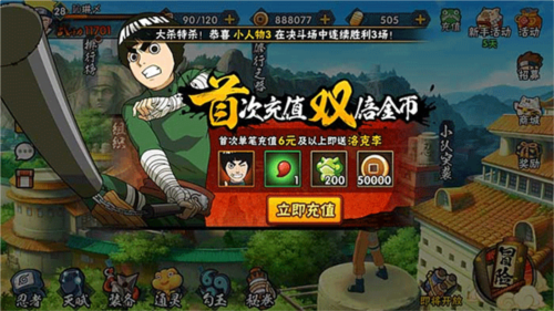 在组织里的商店也可以使用功勋购买碎片,不过忍者碎片需要一定的组织等级才能解锁。此外,每周都会有一个可以用金币直接购买的忍者,价格大概在688-888金币左右。玩家要多省金币,否则可能会错过心仪的忍者。还有一些其他活动也可以获得忍者(例如首次充值活动,首次充值双倍金币且单笔充值6元以上送洛克李)。