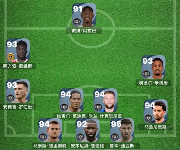 3、左后卫位置上,阿方索·戴维斯和罗伯逊都是不错的选择。中后卫方面,图中5位中后卫均为顶级普卡。右后卫则推荐使用中后卫客串。