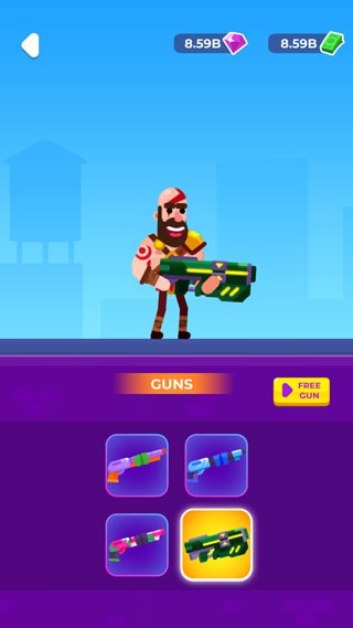 游戏拥有超过55个独特的同类型关卡,丰富的关卡可以挑战尽可能多的使用一击击败敌人,可以使用一颗子弹从不使用两颗。