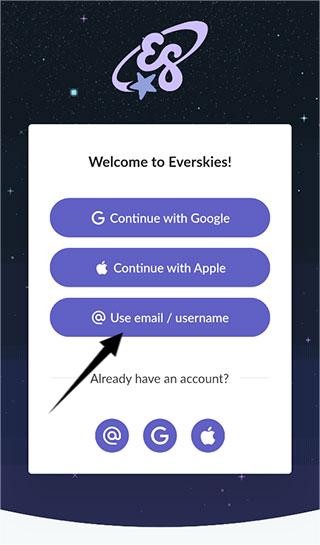 1、在本站下载并安装好Everskies游戏官方版后,打开游戏并等待2~3分钟,选择登录方式“use email”。