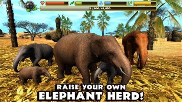 1、游戏中的大象可以与其他动物互动和交流,例如与成群的大象互动或与其他动物争夺领土。