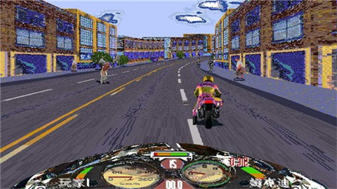 1、游戏开始后,长按右箭头前进键,摩托车启动,左右键控制摩托车在路上的位置。