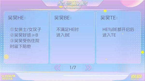 BE:属性无要求,好感低于10,其余选择随意;