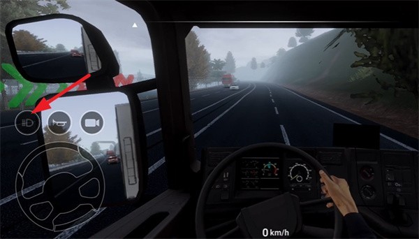 2、左侧的虚拟方向盘用于控制车辆方向,右侧有加速和减速按键。