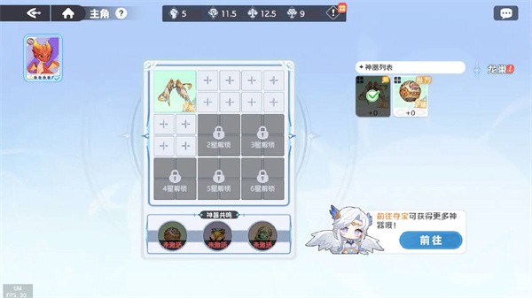 【主角强化】神器整合所有宝物的强化效果,为主角提供战力加成。解锁的神器越多,总战力加成越强。