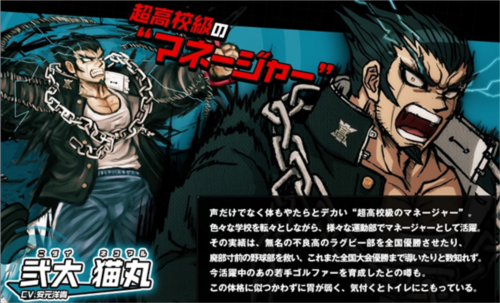 体格魁梧、声如洪钟,曾带领濒临解散的橄榄球部与棒球部夺得全国冠军,是拯救体育社团的传奇人物。唯独肠胃较为脆弱。