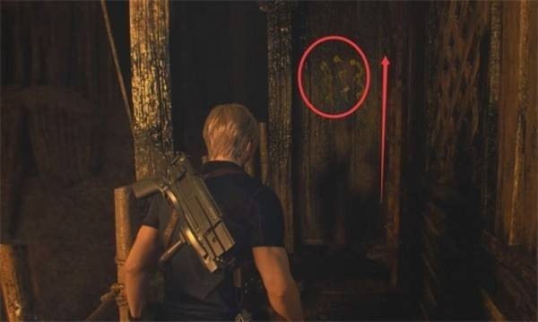 2、登上屋顶后,第二个按钮的图案由前方木板与墙面共同构成,需整体辨认。