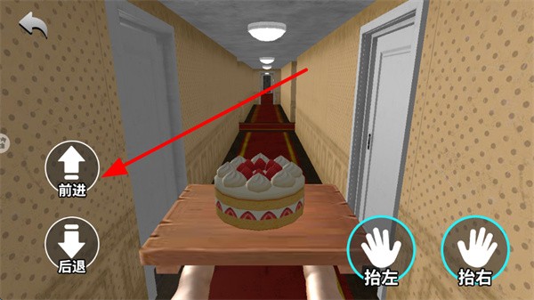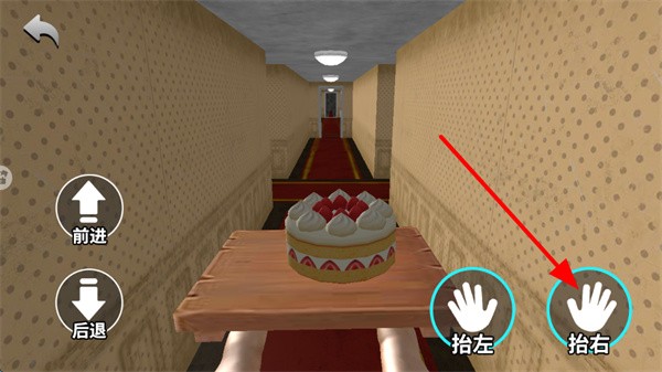 2、通过右侧的“抬左”或“抬右”按钮进行操作,分别控制角色抬起左手或右手,从而维持托盘的平衡,防止蛋糕因倾斜而滑落。