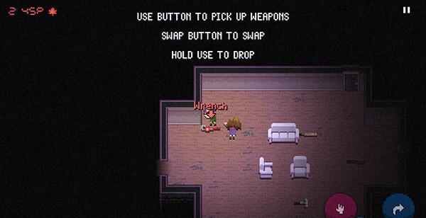 5、进入第二个房间后,地上有武器可供捡取使用;