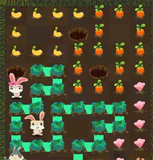第二步:小兔子清理掉胡萝卜,按照上图的走法进行。