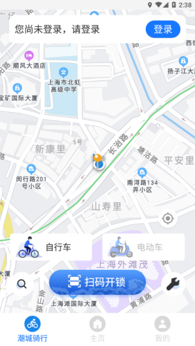1、打开软件完成注册登录,并通过实名认证后,方可进入主界面,之后才能使用扫码功能解锁车辆;