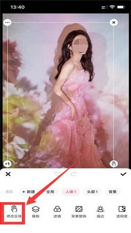 3、接着,通过拖动边框来调节方框尺寸,圈定需要抠图的特定区域,确认选区无误后,点击“修改区域”,可对选区进行进一步微调;
