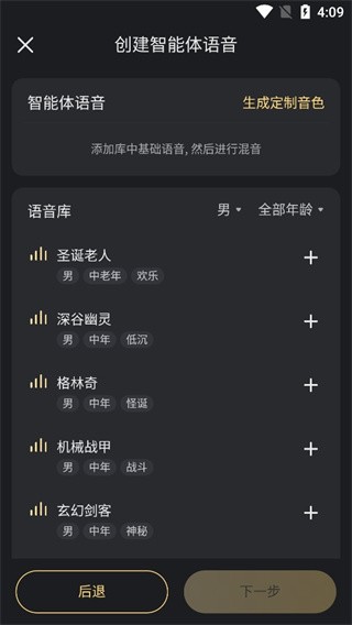 3、选择智能体的性别,开始创建过程。