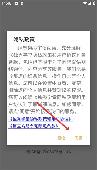 1、下载安装完成后打开应用,需在用户协议和隐私政策界面点击同意按钮,接受相关条款后才能进入应用。