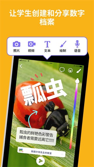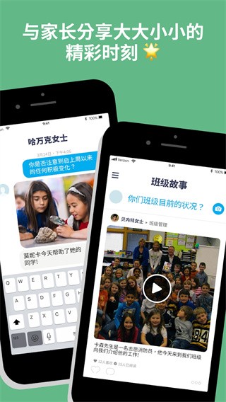 2、老师可以分享照片、视频和公告,让家长体验课堂生活。
