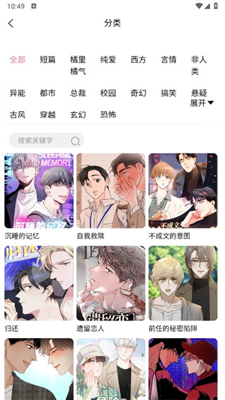 2、分类涵盖题材、选材、作者3种方式,个性化推荐,满足漫画迷挑剔的口味。