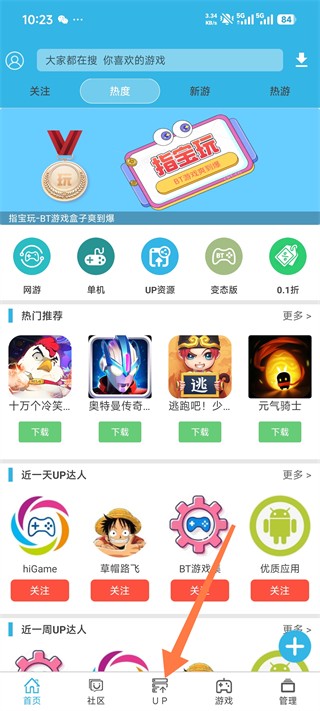 1、打开软天空,进入底部导航栏的【UP】上传板块;