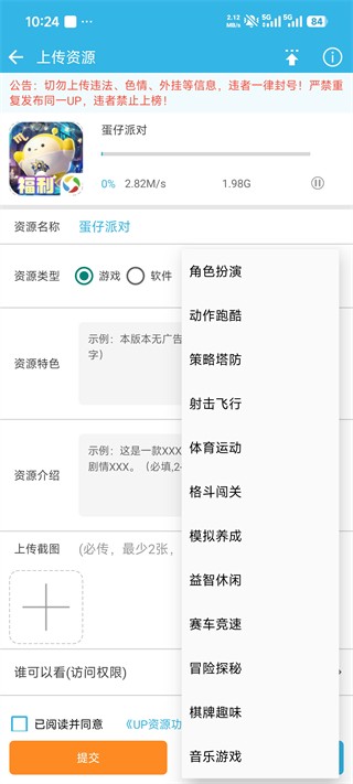 5、上传过程中,系统会提示你选择对应的游戏分类,请根据内容准确填写;