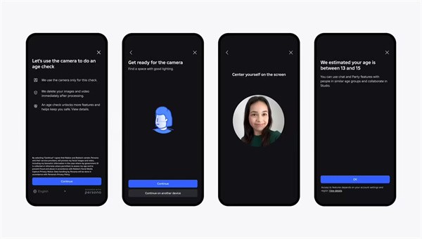 Roblox的年龄核验措施:聊天需提交证件或扫脸验证。与多数将最低年龄设为13岁的社交媒体不同,Roblox允许更小的儿童使用。由于许多儿童和青少年无身份证件,Roblox采用Persona的年龄估算技术,通过视频自拍完成,全程在Roblox应用内进行,且用户脸部影像在核验后会立即删除。