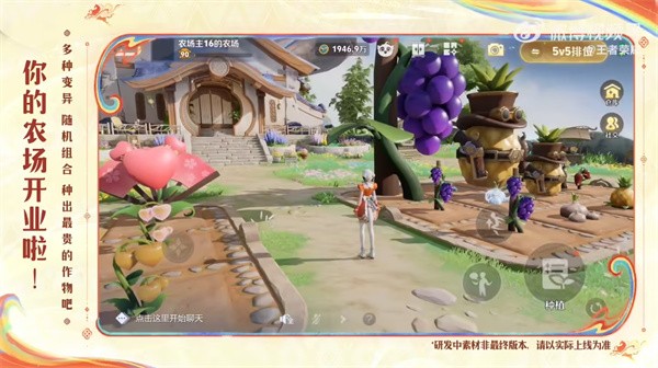 根据官方发布的预热影片,该农场系统包含几十种农作物可供培育,允许玩家随意切换观察角度,未来可能还会加入农田升级、植物变种等特色功能。此外某些农作物设计融入了英雄元素,比如形似马可波罗的"马可菠萝"、resembling小乔折扇的植物等。